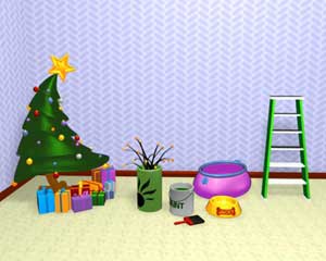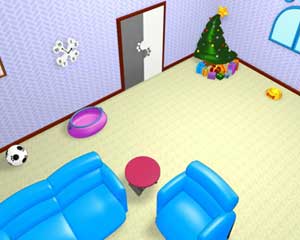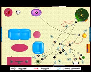 view of the living room with character path and camera position.