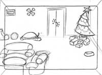 Jacky sleeping at living room | extreme wide shot with slowly zoom in | -Jacky -basket |