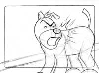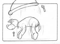 Jacky's tail moving from left to right (repeat) | medium shot | -Jacky -basket |