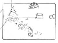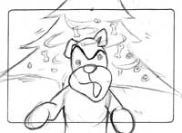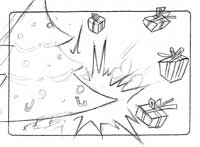 Jacky keep turning his body in a circle to the christmas tree | wide shot | Jacky | b03 | -waving -arrg -cracking |