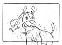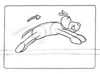 Jacky jumps towards the ants. | -medium