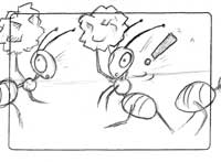 Jacky runs towards the ants again. | medium shot | Jacky | b01 |