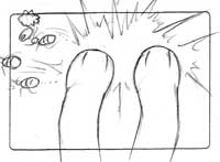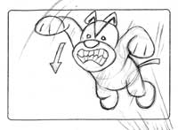 Jacky's paws hit to the ants but the ants runaway. |