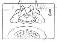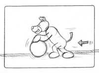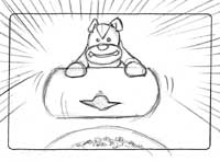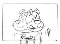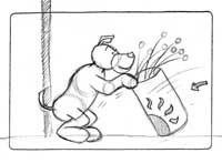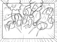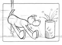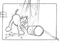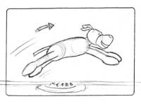 Jacky quickly jumps over the circle of paint and rush towards the vase. | medium long shot | -Jacky -ants |