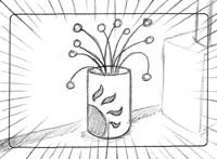 Jacky is moving down the vase. | medium long shot | -Jacky -vase -"flower" |