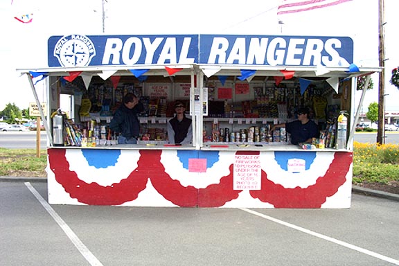 Proceeds from the fundraiser help fund Sequim Worship Center's Royal Ranger Outpost for the entire year. Only Class C fireworks approved by the State Fire Marshall are sold at the stand. Persons must be 16 years old to purchase fireworks; picture ID is required.