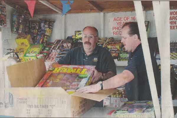 Senior Commander Preston Smith and Pastor Dave Westman load the fireworks stand.