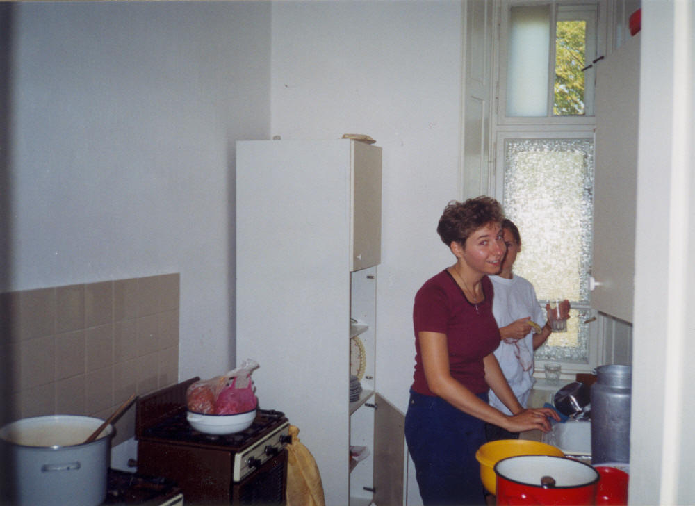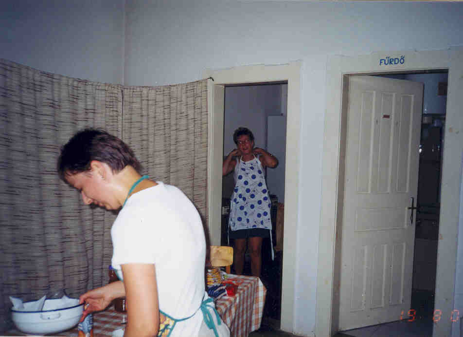 A lányok rögtön munkához látnak... kiváló a hangulat a parókia konyhájában.