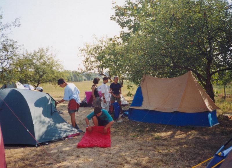 Persze a többiek sem pihennek... egy-kettőre felállítják a sátrakat.