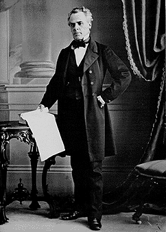 [Source: A Cyclopaedia of Canadian Biography Being Chiefly the Men of the Time. Geo. Maclean Rose, ed. Toronto: Rose Publishing Co., 1886-88.] Georges-Étienne Cartier was born on the 6th of September, 1814 at St. Antoine, Quebec. In 1835 he commenced the practice of law and by the indomitable force of character which so contributed to his subsequent political prominence, he soon succeeded in forcing his way to the front rank of the legal fraternity. M. Cartier was first elected to parliament for the County of Verchères in 1848; on the 24th of May, 1856 he became Attorney-General for Lower Canada. On the 6th of August, 1858 there was ushered in the Macdonald-Cartier government. He is looked upon, and perhaps deservedly, by the French-Canadian people as the greatest statesman that the French Province has produced. He was instrumental in the abolition of seignorial tenure; making the Legislative Council elective; the secularization of the Clergy Reserves and in bringing about Confederation [see British North America Act]. He took an active part in the Canadian Pacific Railway project. The great secret of his success was his strong ambition, and his almost phenomenal perseverance and energy. It was customary with those who heard him make speeches to say that after he sat down, that nothing more remained to be said. He had the gift too, of being a master of both French and English, an accomplishment necessary in a prominent Canadian statesman.