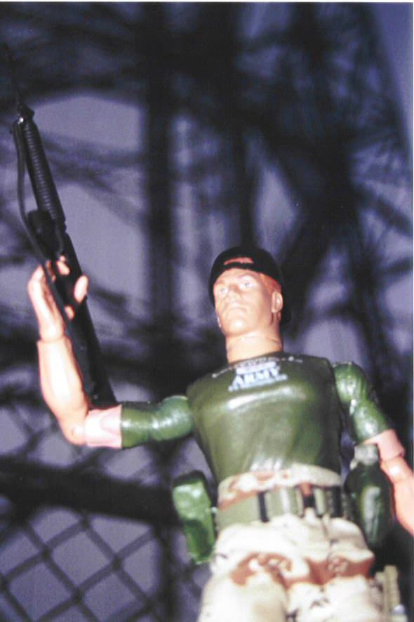 | This is an anti-war statement. It is told through a parody of war film cliches, and portrayed using war toys and the kind of play that children engage in with these toys. Knee-jerk patriotism is dangerous, especially now. Using crudely articulated and expressionless action figures (in concert with the same kind of "mouth foley" that kids use when playing with these toys), we hope to make the movie humorous, while inspiring the audience to consider the ramifications of military deployment. |
