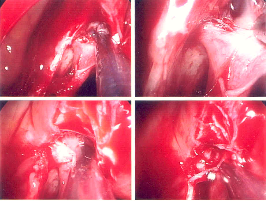 | The picture above depicts a sphenopalatine artery ligation. This procedure is done endoscopically through the nostril. The patient awakes without packing. Recovery is fairly swift, and the results, in properly selected patients, are excellent. | ||||||||||||||||||||