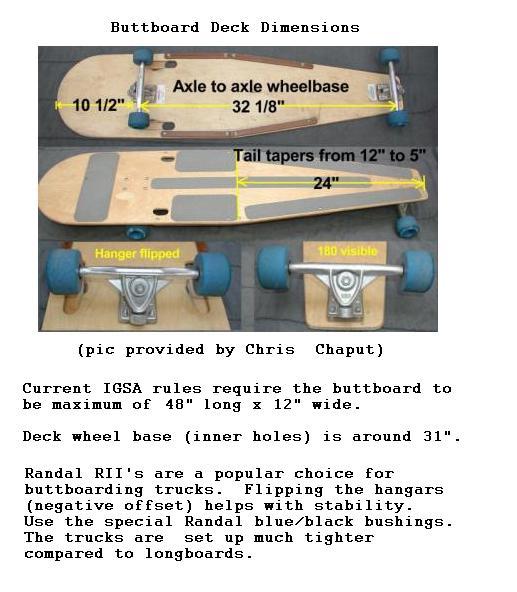 For beginners to street luge, a buttboard is a good alternative to getting  a streetluge.  It's much cheaper, more manueverable, easy to transport, and quite capable of high speed.  Buttboarding is also a separate class in luge racing and have rules that limits the size of the deck (12"x48" max) and wheels (70mm).