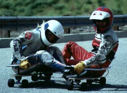Safety First - wear leathers, gloves with knuckle protectors, full face helmet (wedge type for visibility), and shoes with tire retread for braking (see hughR's luge page)
