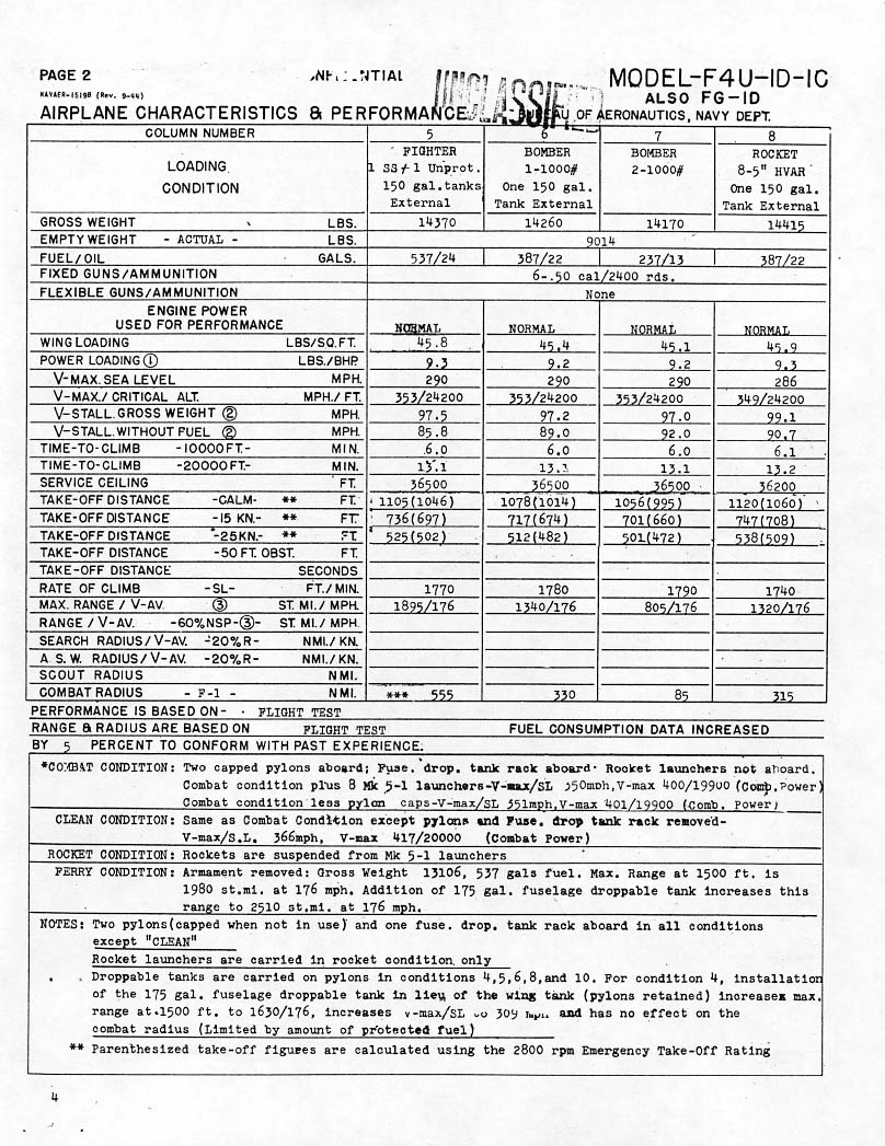 Slaker's Flight Journal | F4U-1D Standard Aircraft Characteristics | home