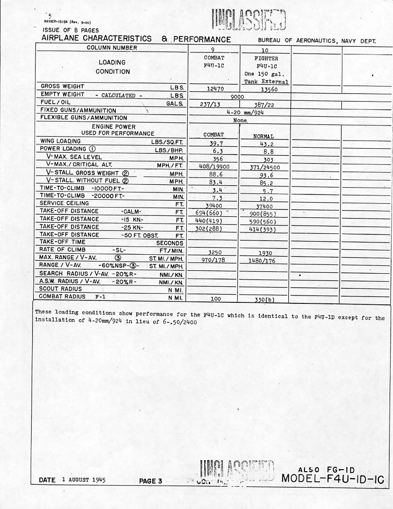 Slaker's Flight Journal | F4U-1D Standard Aircraft Characteristics | home