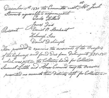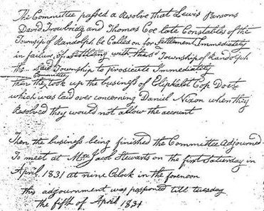 Minutes from the Randolph township council from the 1830s which mention David Trowbridge as a town constable.
