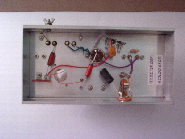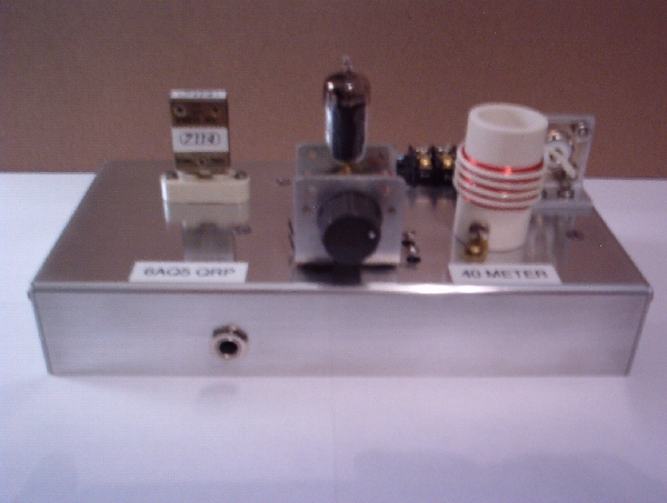 The KC5LDO 6AQ5 QRP CW TransmitterSimplicity and minimal parts count make this transmitter an excellent choice. New parts are still available and fairly inexpensive. A well stocked junk box could provide most if not all the parts. ![]() Pictured above in the foreground is the One Tube Receiver on the left and the 6AQ5 Transmitter on the right. I think the two make a very nice matched pair. Power output is from 2 to 7 watts depending on your power supply. Maximum plate voltage for the 6AQ5 is 275 volts. Higher voltages will shorten tube life. ![]() My transmitter produces a nice clean tone with 4 watts output using plate voltage of 245 VDC. Tube emission will also effect output. Dangerous voltages are present in this transmitter and could prove . If you are not familiar with high voltages in tube equipment, please seek qualified help. ![]() Tune up is very easy with only one variable capacitor to adjust. Use a wattmeter or tune for maximum signal strength and best tone on your receiver. I built mine on a 4 X 6 inch chassis with room to spare. A 4 X 4 inch chassis could be used. A variable capacitor from a junked broadcast set was used. The coil form is PVC pipe with an outer diameter of 1 1/8 inch. With the exception of resistors and capacitors, all parts are from the junk box. ![]() ![]() The 6AQ5 makes a great QRP CW transmitter that is fun to build as well as to use.
