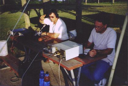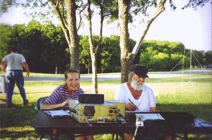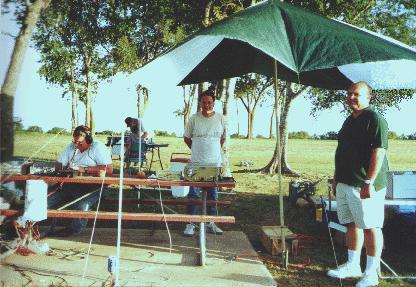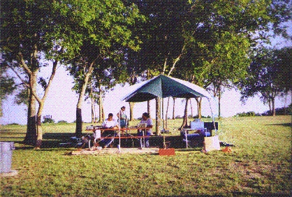the shade. In the background is Julia, KC5BFL and Larry, KC5BFM.